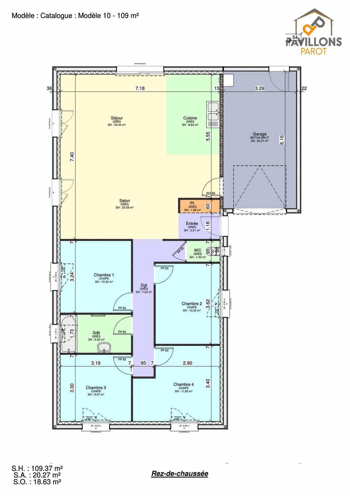 Sur ce terrain, nous vous proposons cette maison neuve, modèle Caprice, conçue par Pavillons Parot. Voici une habitation de plain-pied de conception pratique et fonctionnelle pour les familles, au design sobre et très classe.