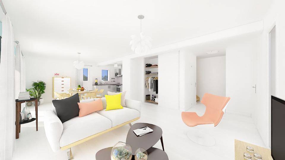 Maison livrée clef en main. Reste à charge client la cuisine, la peinture et revêtements de sols dans les chambres.