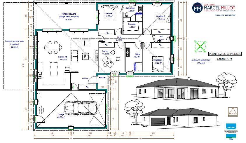 TERRAIN ET MAISONMaison neuve à bâtir – Le Palais-sur-Vienne Venez découvrir ce projet de maison moderne de 118 m2, sur une parcelle de 805 m2.Cette maison, lumineuse et fonctionnelle, offre un espace de vie convivial avec un beau séjour ouvert sur une terrasse, parfait pour profiter des beaux jours.Elle comprend 3 chambres, dont une suite parentale avec salle d’eau et dressing, pour allier confort et intimité, un bureau et un garage double. Réglementation RE 2020, maison construite sur un vide sanitaire. Le prix de 329 600 € comprend : l’achat du terrain, les frais de notaire, la construction de la maison hors finitions intérieures, les différentes garanties, etc. ) Pour plus de renseignements :Contacter Marion NOBLET Maison MILLOT (Numéro supprimé).