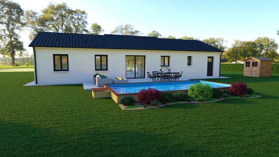 Nous vous proposons un terrain de 1200 m2 et un projet de maison moderne de 95m2.