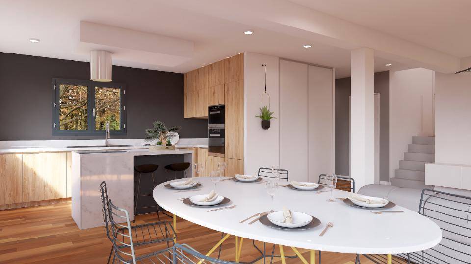 La maison Naticéa est un modèle demi-niveaux qui fait la part belle aux grands espaces et s'adapte facilement aux terrains en pente. Au rez-de-chaussée, une large pièce à vivre permet d'agencer cuisine, salon et salle à manger selon vos envies et l'orientation de votre terrain. Grâce à de grandes baies vitrées, votre intérieur sera baigné de lumière tout en privilégiant les accès vers le jardin.