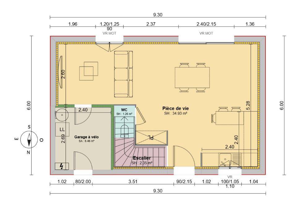 TERRAIN ET MAISONLa Natigreen est un modèle de maison à étage qui se distingue par ses grands espaces de vie et sa luminosité. Initialement pensée pour s’insérer dans un projet de maison à énergie positive, la Natigreen comporte tous les atouts d’une villa familiale où il fait bon vivre. Tous les éléments sont réunis pour vous proposer confort, sérénité et plaisir de profiter de son habitat. Au rez-de-chaussée, entrez dans un espace de vie entièrement ouvert et aéré, dont la disposition intérieure vous permet de créer un coin TV, un espace pour les repas ainsi qu’une grande cuisine. Toujours à ce niveau, découvrez la possibilité d’aménager une large chambre parentale avec sa salle d’eau attenante. A l’étage, vous pourrez retrouver plusieurs chambres, dont le nombre est personnalisable selon vos besoins et la superficie de votre maison. Une grande salle de bain avec WC indépendants viennent compléter les prestations de qualité offertes par cette maison ossature bois.