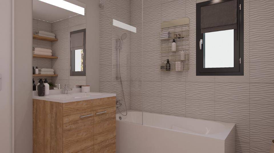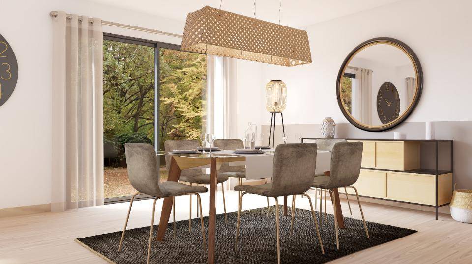 TERRAIN ET MAISONLancé en 2017 avec la ligne de maisons « montagne », le modèle Natival tranche radicalement avec les modèles traditionnels et contemporains qui composent la gamme de maison Natilia. La Natival emprunte architecturalement aux chalets que l’on trouve dans les Alpes avec son toit à forte inclinaison taillé pour résister aux fortes chutes de neige. Mais ne vous y tromper pas, contrairement aux chalets d’antan, la Natival est un concentré de modernité : très ouverte sur l’extérieur, la maison possède 3 baies vitrées au rez-de-chaussée dont une pour la chambre double ainsi que deux grandes fenêtres à l’étage. La lumière inonde ainsi les pièces de vie et les chambres été comme hiver.Spacieuse, la maison se compose d’une très grande pièce de vie avec cuisine ouverte et d’une suite parentale au rez-de-chaussée. La présence d’une chambre isolée du reste de la maison est un gage de tranquillité. A l’étage, deux chambres, un bureau et une salle de bains viennent compléter cette maison à l’allure typique montagnarde.