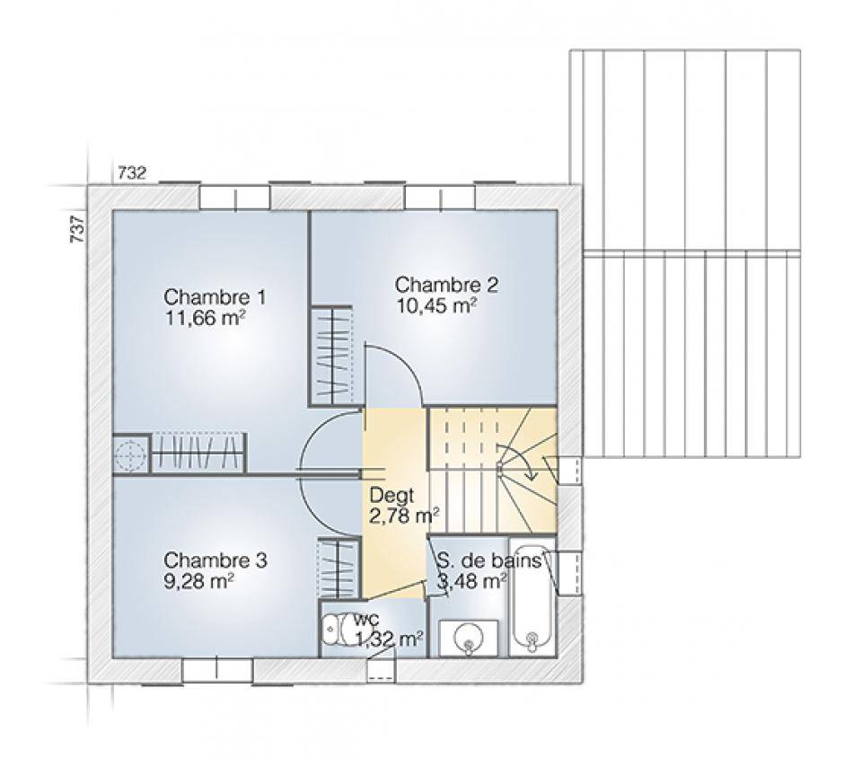 Il s'agit d'une maison de 2 niveaux. Elle est neuve.