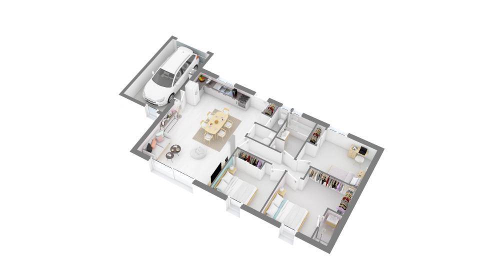 Maison ACTUA de 95 m² proposée ici sur 500 m² de terrain dans un magnifique environnement calme.