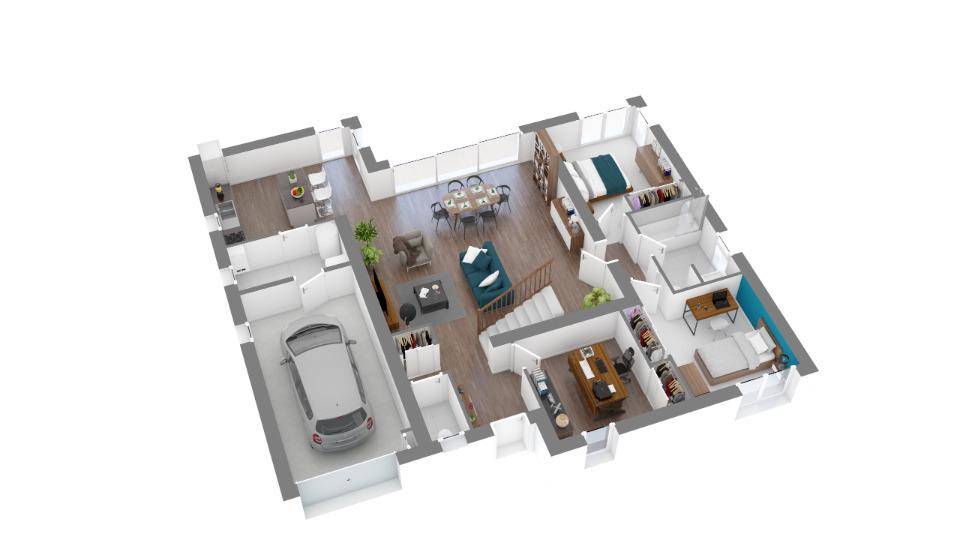 Votre maison bioclimatique est livrée crépis gratté + carrelage dans toutes les pièces (A choisir). Dans la salle de bain la faïence est comprise (A choisir). Les sanitaires avec meuble(s) vasque(s) et wc suspendu sont déjà inclus.