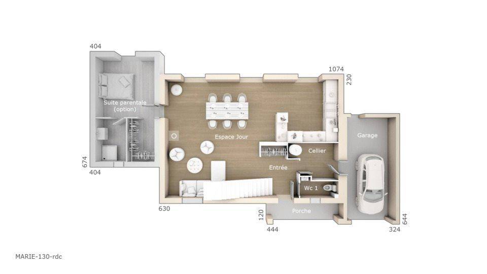 Maison Marie de 120 m² proposée ici sur 750 m² de terrain.