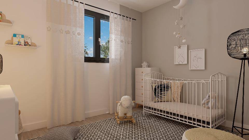 Cette maison compte 2 niveaux. Elle inclut trois chambres, une cuisine et une salle de bains. Cette maison est neuve.