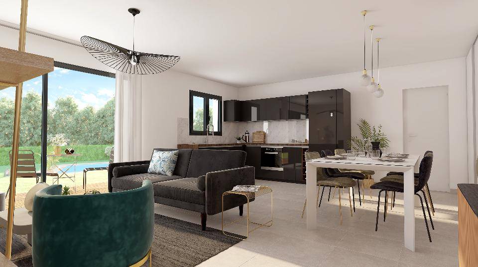 TERRAIN ET MAISONNos architectes ont conçu ce modèle pour vous. Cette maison résolument contemporaine, saura vous séduire par son architecture innovante et sa pergola bioclimatique qui lui donneront un design unique. Elle possède deux espaces bien distincts avec un espace jour de 44 m² et un espace nuit avec 3 belles chambres dont une suite parentale, un WC Indépendant et une salle de bains confortable. N’attendez plus et venez construire votre projet de vie par Oc résidences, votre constructeur sur mesure en Occitanie.