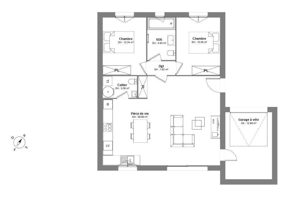 PROJET DE CONSTRUCTION - Maison F3 (70 m²) à Quarante