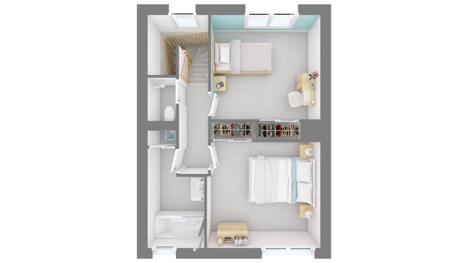 C'est une maison de 2 niveaux. Son intérieur offre trois chambres, une cuisine et deux salles de bains. La maison est neuve.
