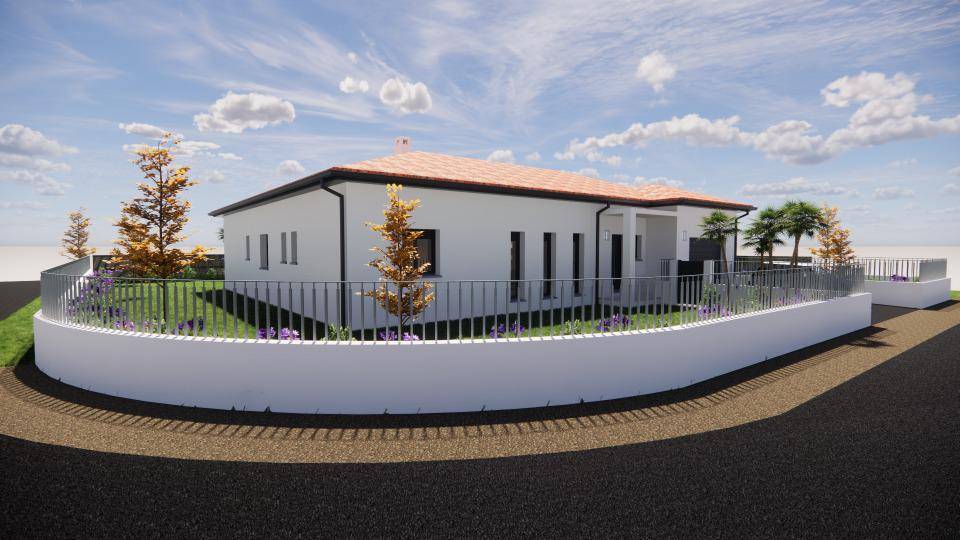 Cette maison de plain-pied est de plain-pied. Son intérieur comporte quatre chambres, une cuisine et deux salles de bains. Cette maison est neuve.