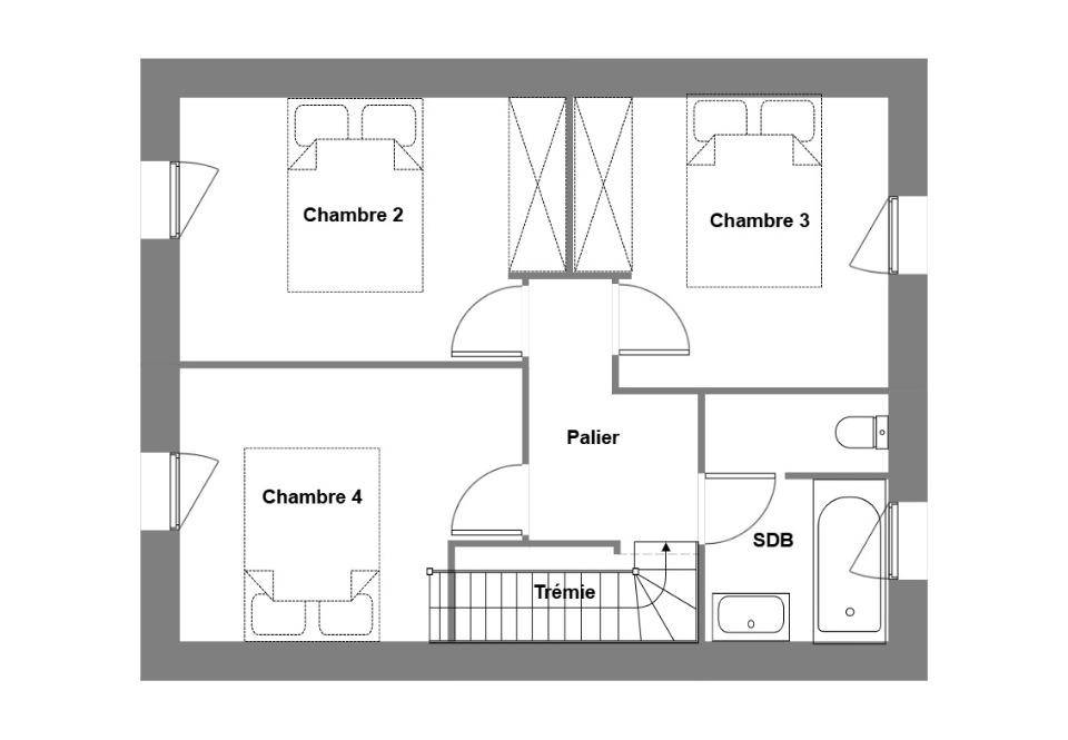 Il s'agit d'une maison de 2 niveaux. Son intérieur inclut quatre chambres, une cuisine et une salle de bains. Cette maison est neuve.