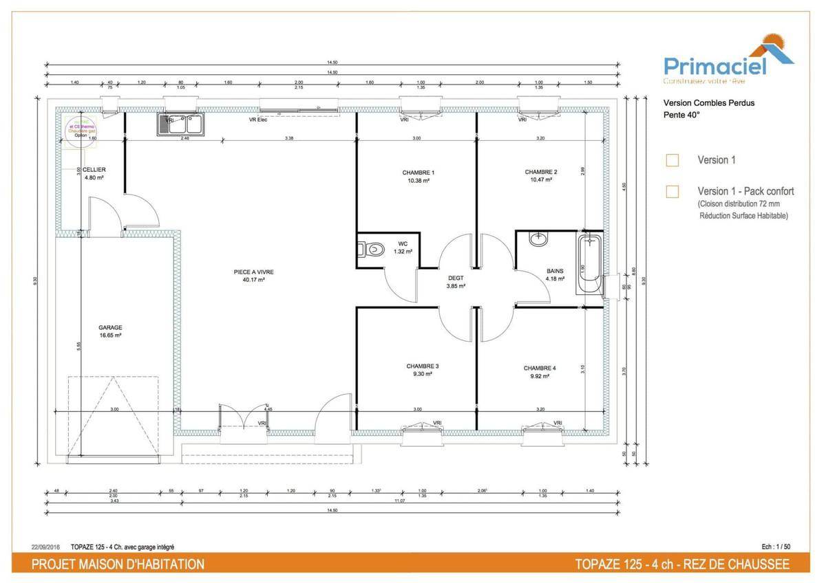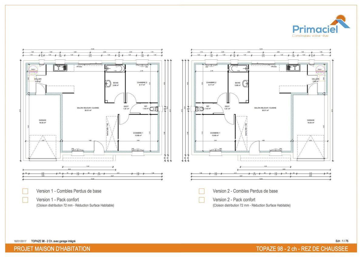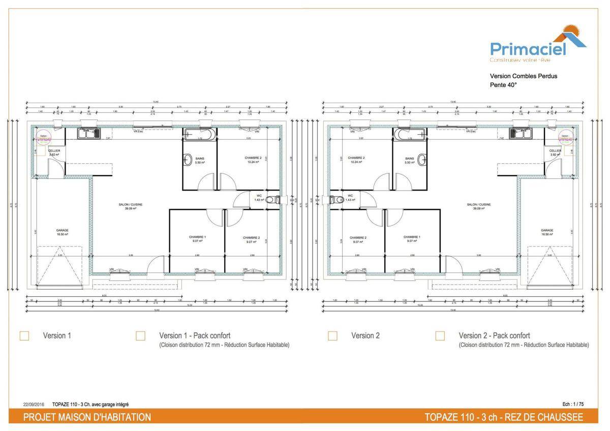 TERRAIN ET MAISONNous vous proposons cette maison neuve, baptisée « »Saphir » », un modèle de notre gamme Primaciel conçu pour être accessible au plus grand nombre et idéal pour une première acquisition. De plain-pied, cette maison à prix maîtrisé bénéficie d’un aménagement optimisé avec son garage intégré, offrant un confort de vie inégalé sur une surface de 68 m².Le modèle Saphir se distingue par ses 4 pièces bien agencées, comprenant 3 chambres accueillantes pour toute la famille ou pour aménager un espace bureau selon vos besoins. La conception de cette maison a été pensée pour maximiser chaque mètre carré disponible, offrant ainsi un espace de vie chaleureux et fonctionnel.Parmi ses caractéristiques principales, le Saphir présente des combles perdus, permettant une isolation optimale et une réduction significative des besoins en chauffage. Le garage intégré offre non seulement un espace de stationnement sécurisé mais aussi un espace de rangement supplémentaire, très apprécié dans une maison de cette taille.Conscients des attentes de nos clients, nous proposons en option l’aménagement des combles, une demande fréquente qui permet d’augmenter l’espace de vie sans empiéter sur le jardin. Cette option transforme les combles perdus en pièces à vivre, idéales pour une salle de jeux, un bureau ou une chambre supplémentaire.Cette maison neuve est également conçue pour être basse consommation et est conforme à la réglementation environnementale RE2020. Cela signifie que le Saphir bénéficie des dernières innovations en matière d’isolation et de systèmes énergétiques, réduisant ainsi les coûts énergétiques tout en respectant l’environnement.Le modèle Saphir est une invitation à vivre dans une maison moderne, économique et confortable, pensée pour répondre aux besoins des familles d’aujourd’hui. Faites le premier pas vers la maison de vos rêves en choisissant Saphir, un modèle qui allie qualité, confort et respect de l’environnement.