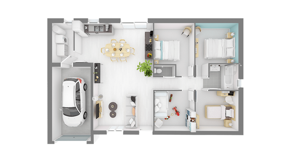 L'intégration d'un garage offre non seulement un espace de stationnement sécurisé mais aussi un espace de rangement supplémentaire, essentiel pour une vie de famille organisée. Les options les plus plébiscitées, telles que l'enduit bi-ton et les baies coulissantes, sont disponibles pour personnaliser votre maison selon vos goûts et vos besoins, ajoutant une touche d'élégance et de modernité à votre façade et à votre espace de vie.