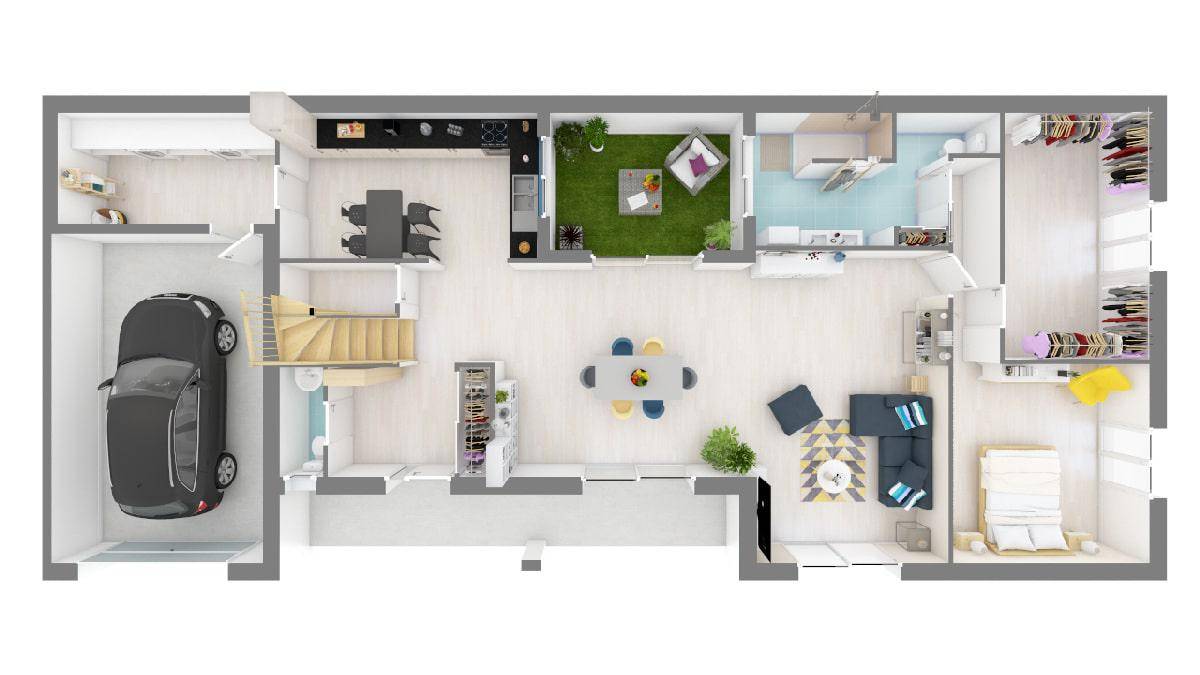 Composée de 4 chambres et totalisant 4 pièces, elle offre un cadre de vie idéal pour toute la famille. La suite parentale, véritable havre de paix, promet intimité et sérénité. Le garage intégré, pratique et esthétique, souligne la fonctionnalité de cette maison. Pour ceux qui désirent encore plus d'espace, l'option d'un double garage est disponible, ainsi qu'un enduit bi-ton pour personnaliser davantage l'extérieur selon vos goûts.