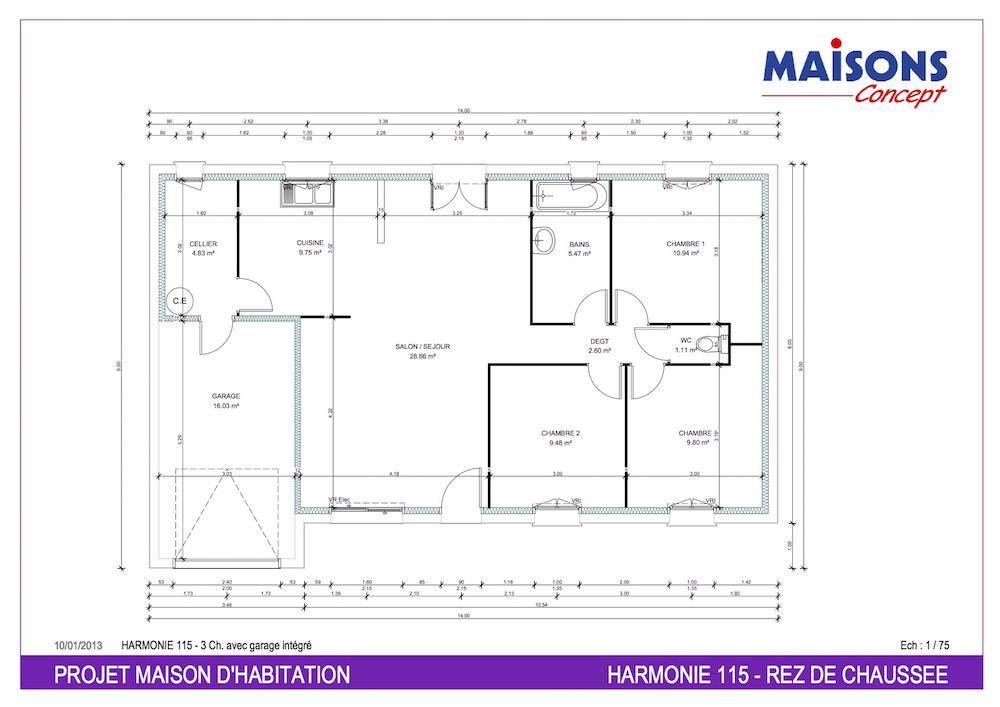 Cette maison est le fruit d'une conception réfléchie, visant à allier esthétique et fonctionnalité. Son garage, avec son avancée caractéristique, et sa toiture à faible pente, lui confèrent un charme unique, tout en préservant l'aspect traditionnel tant apprécié. ""Harmonie"" est adaptable selon vos désirs, offrant la possibilité de personnaliser votre espace pour qu'il réponde parfaitement à vos attentes.