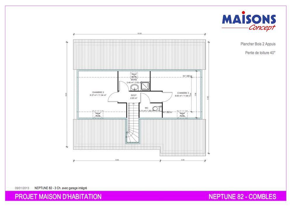 Neptune se distingue par ses combles aménagés, offrant ainsi un espace supplémentaire qui peut être transformé en bureau, salle de jeux, ou encore en une chambre d'amis, selon vos besoins et envies. Le garage intégré est un atout majeur, garantissant non seulement la sécurité de votre véhicule mais aussi une optimisation de l'espace extérieur de votre propriété.