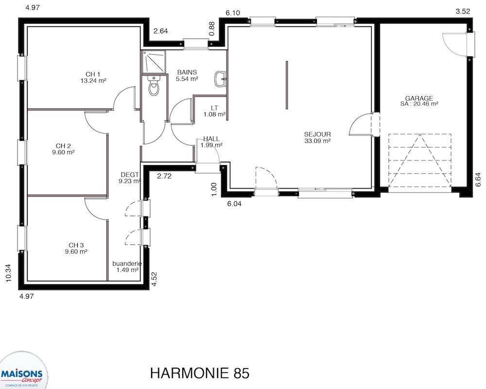 TERRAIN ET MAISONTerrain à bâtir – Vallères (37190)75 000 € – 583 m² – Viabilisé. Terrain viabilisé de 583 m², plat et bien orienté, situé dans un secteur résidentiel agréable. La commune de Vallères dispose d’écoles, de commerces et de services de proximité. Accès facile vers Azay-le-Rideau et Tours, idéal pour concilier tranquillité et mobilité quotidienne. . Fonctionnelle et lumineuse, cette maison de plain-pied vous propose un espace de vie de plus de 42 m²ouvert sur le jardin et sa cuisine ouverte aménagée avec un accès direct au cellier et à son garage intégré. La partie nuit est composée de trois chambres avec rangement, une salle de bain et wc indépendant. Pour vous assurer un confort de vie et conformément à la RE2025, nous avons choisi un mode de chauffage par PAC + plancher chauffant, volets roulants électriques. Prix hors fourniture et pose : des appareils sanitaires (sauf système de chauffage et d'eau chaude sanitaire), du carrelage et de la faïence, des revêtements de sol dans les chambres. Hors décoration et aménagement intérieur et peinture. Hors raccordements, frais de notaire et dommage ouvrage. // Réf. : 1209-211123-MGA. Prix terrain : 75 000 €, hors frais d'agence à la charge de l'acquéreur. Ce terrain vous est proposé, par nos partenaires fonciers, dans le cadre d'un projet de construction avec nous. Les informations sur les risques auxquels ce bien est exposé sont disponibles sur le site Géorisques (www.georisques.gouv.fr). Prix maison : 124 435 €.