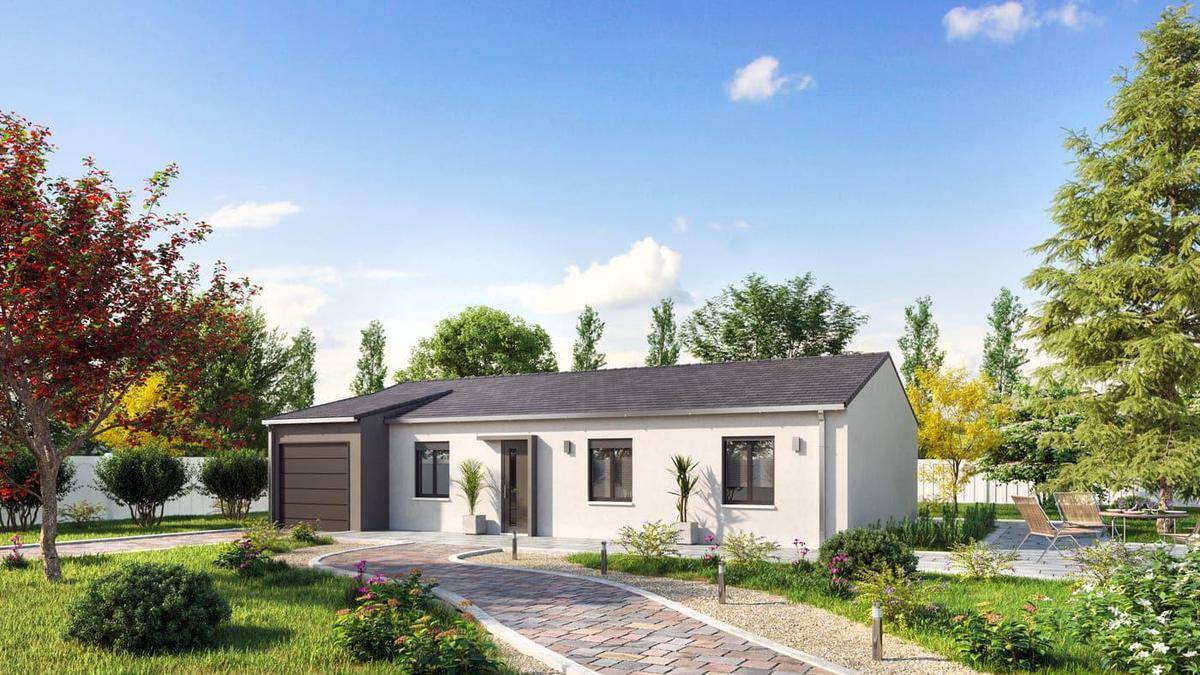 TERRAIN ET MAISONNous vous proposons cette maison neuve, baptisée « »Élégance » », un modèle qui se distingue par sa forme architecturale en L, offrant à la fois style et fonctionnalité sur une surface habitable de 103 m². Conçue pour répondre aux attentes des plus exigeants, cette maison de plain-pied combine harmonieusement espace et confort, avec un total de 4 pièces, dont 4 chambres spacieuses, promettant ainsi un cadre de vie idéal pour toute la famille.L’entrée s’ouvre sur un vaste salon-séjour baigné de lumière, grâce à sa conception ouverte qui s’étend jusqu’à la cuisine, créant un espace de vie convivial et accueillant. L’intégration d’un garage attenant et d’un cellier pratique souligne la pensée méticuleuse mise dans la conception de cette maison, visant à allier esthétique et fonctionnalité.L’une des caractéristiques les plus appréciées de ce modèle est son enduit bi-ton, qui ajoute une touche de modernité et d’élégance à l’extérieur, reflétant le nom même de la maison. De plus, cette maison est entièrement personnalisable, vous permettant d’adapter chaque espace à votre mode de vie et à vos préférences, assurant ainsi que votre futur foyer réponde parfaitement à vos attentes.Au-delà de son design attrayant, « »Élégance » » est une maison basse consommation, rigoureusement conçue pour respecter les normes de la RE2020. Cette caractéristique garantit non seulement un confort optimal tout au long de l’année mais aussi des économies significatives sur les factures d’énergie, soulignant notre engagement envers la durabilité et le respect de l’environnement.En choisissant « »Élégance » », vous optez pour une maison qui allie beauté, confort et responsabilité environnementale. Une opportunité à ne pas manquer pour ceux qui cherchent à construire leur nid familial dans un cadre de vie à la fois moderne et économe en énergie.