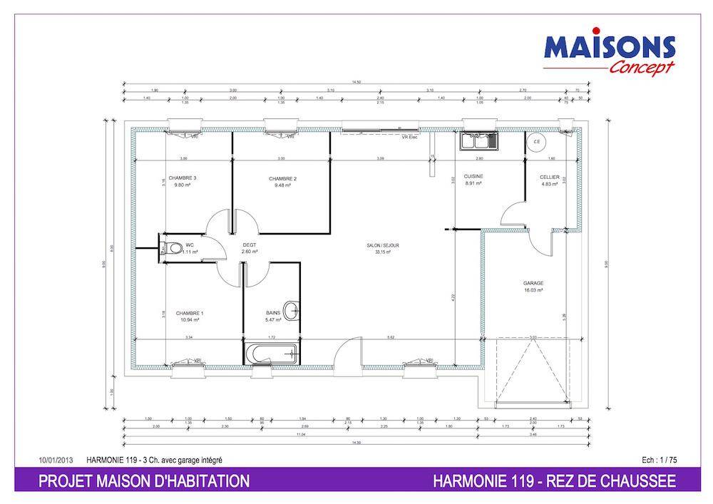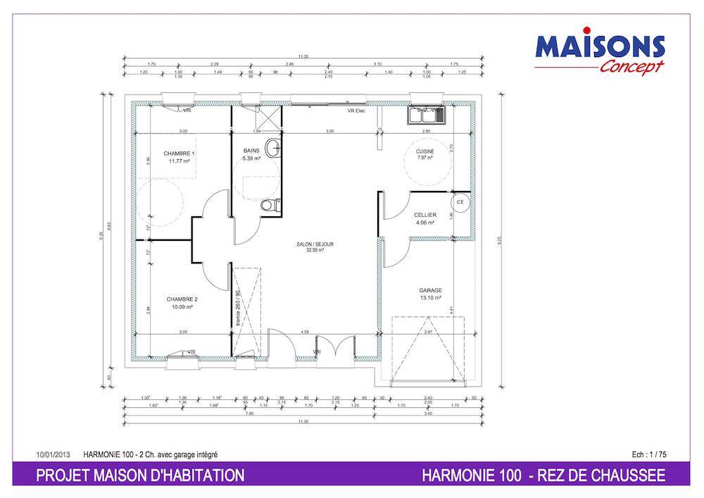 Le modèle ""Harmonie"" conserve l'essence de la maison traditionnelle, appréciée pour son aspect familial et convivial, tout en y ajoutant une touche d'originalité grâce à son avancée au niveau du garage et sa toiture à faible pente. Cette maison est le produit phare de Maisons Concept, reflétant notre engagement à offrir des demeures de qualité, adaptées aux besoins de chaque famille.