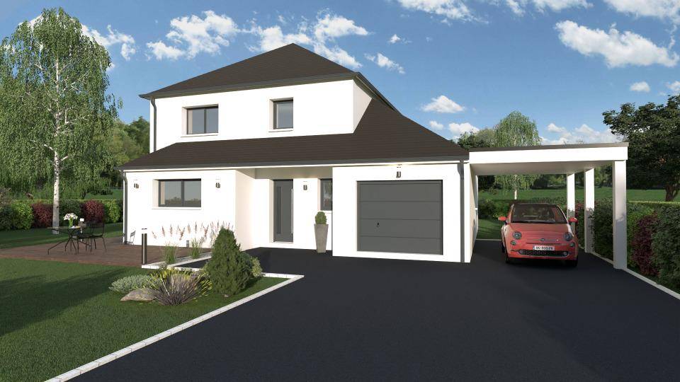 TERRAIN ET MAISONJolie maison tradi-moderne sur étage d’une superficie globale de 143m².Au rez-de-chaussée, vous trouverez un garage spacieux ainsi qu’un carport en toit terrasse, une belle pièce de vie de 55m², deux grandes chambres, une salle d’eau commune, un cellier et un WC.A l’étage, vous trouverez trois grandes chambres ainsi qu’une belle salle de bain et une mezzanine.Concernant les prestations de la maison, vous retrouverez une pompe à chaleur couplée avec un plancher chauffant, des menuiseries de couleur en aluminium, un plancher béton, des ardoises artificielles, toiture 4 pans, carport en toit plat…CONSTRUCTIONS IDEALE DEMEURE a sélectionné avec un partenaire foncier un terrain pour construire cette maison.