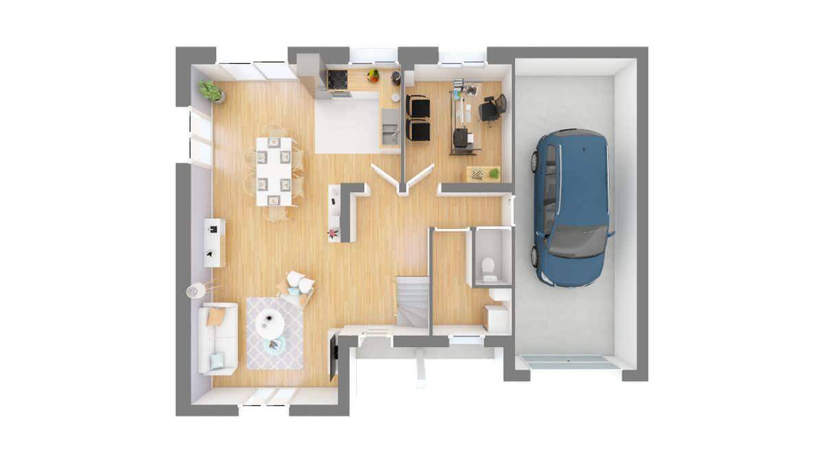 La suite parentale, située au rez-de-chaussée, est pensée pour offrir un espace privé et confortable aux parents, avec un accès direct à la salle de bain et au dressing. Le garage accolé à la maison est un atout supplémentaire, offrant un espace de rangement pratique ou un abri sécurisé pour votre véhicule.