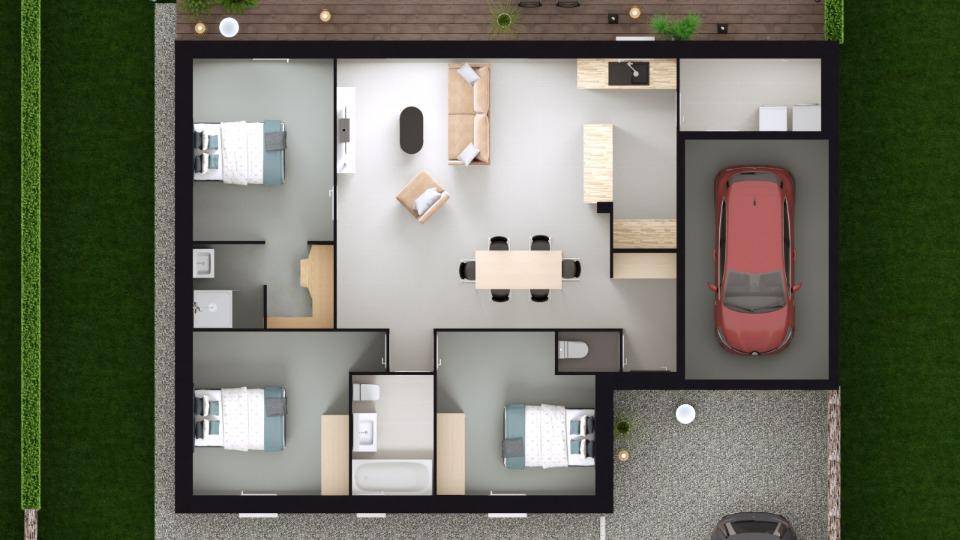 TERRAIN ET MAISONVoici une belle maison de 89m² à construire, offrant une grande pièce de vie lumineuse grâce à sa triple exposition. Elle comprend deux chambres confortables, une salle de bain équipée d’une douche et d’une baignoire, ainsi qu’un grand garage. Un atout majeur de cette maison est sa terrasse couverte, idéale pour profiter de l’extérieur en toute saison. De plus, elle est entièrement personnalisable selon vos envies et besoins.Je reste disponible pour toutes demandes de renseignements, n’hésitez pas me contacter : Stéphane Digneton : (Numéro supprimé).