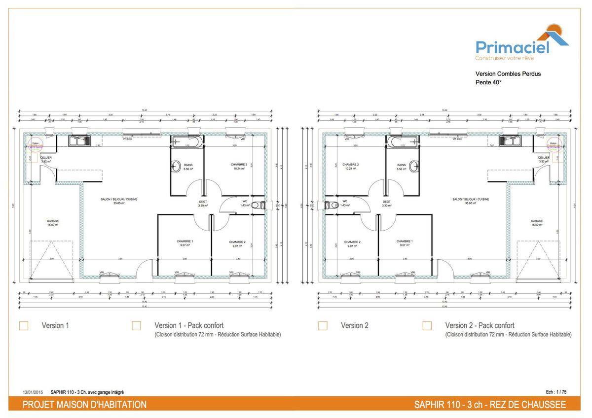 Nous vous proposons cette maison neuve, baptisée ""Saphir"", un modèle de notre gamme Primaciel conçu pour être accessible au plus grand nombre et idéal pour une première acquisition. De plain-pied, cette maison à prix maîtrisé bénéficie d'un aménagement optimisé avec son garage intégré, offrant un confort de vie inégalé sur une surface de 94 m².