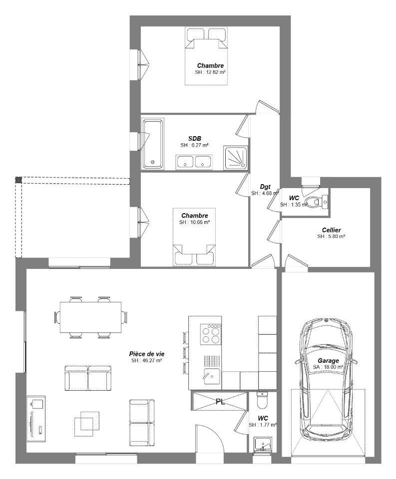 TERRAIN ET MAISONDécouvrez cette magnifique maison de 70m² habitables, conçue pour votre confort. Elle comprend deux belles chambres lumineuses, idéales pour toute la famille. Une grande pièce de vie de plus de 40m², Un grand garage spacieux vous offre un espace de stockage pratique ou un abri sécurisé pour votre voiture. Faites construire ce projet alliant fonctionnalité et charme pour un cadre de vie agréable.De plus, elle est entièrement personnalisable selon vos envies et besoins.Je reste disponible pour toutes demandes de renseignements, n’hésitez pas me contacter : Stéphane Digneton : (Numéro supprimé).CONSTRUCTIONS IDEALE DEMEURE a sélectionné avec un partenaire foncier un terrain pour construire cette maison.