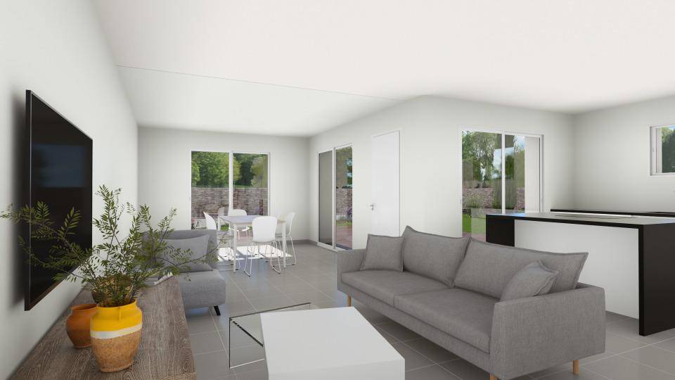 TERRAIN ET MAISONVenez Imaginer Votre Projet de Construction sur Ce Terrain de 806 m² !. Terrain borné de 806 m², non viabilisé, offrant de belles possibilités pour réaliser le projet de vos rêves. Idéalement situé dans un cadre calme et agréable, ce terrain vous permettra de créer une maison qui vous ressemble. Contactez-nous dès aujourd'hui pour plus d'informations et découvrir ce terrain !. Compacte et fonctionnelle, cette maison de plain-pied vous propose un bel espace de vie lumineux, avec une grande baie vitrée donnant sur le jardin. Sa cuisine est ouverte sur le séjour et dispose d'un accès direct au cellier, et au garage intégré. Son espace nuit est composé de deux chambres avec rangements, d'une salle de bains et de wc séparés. Pour vous assurer un confort de vie et conformément à la RE2025, nous avons choisi un mode de chauffage par PAC + plancher chauffant, volets roulants électriques. Prix hors fourniture et pose : des appareils sanitaires (sauf système de chauffage et d'eau chaude sanitaire), du carrelage et de la faïence, des revêtements de sol dans les chambres. Hors décoration et aménagement intérieur et peinture. Hors raccordements, frais de notaire et dommage ouvrage. // Réf. : 838-213565-BEF. Prix terrain : 18 000 €, hors frais d'agence à la charge de l'acquéreur. Ce terrain vous est proposé, par nos partenaires fonciers, dans le cadre d'un projet de construction avec nous. Les informations sur les risques auxquels ce bien est exposé sont disponibles sur le site Géorisques (www.georisques.gouv.fr). Prix maison : 128 229 €.