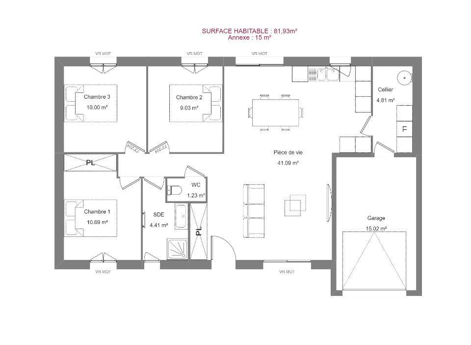 En résumé, cette maison de plain-pied avec 3 chambres et un séjour de 40m² propose un agencement fonctionnel, des espaces lumineux, et une atmosphère conviviale.