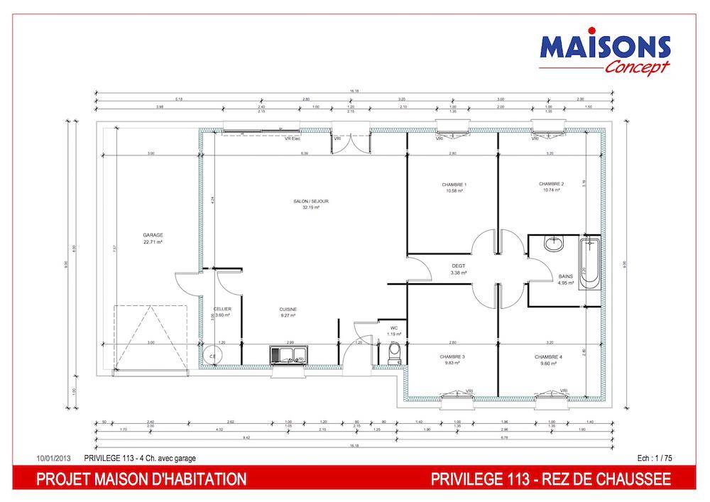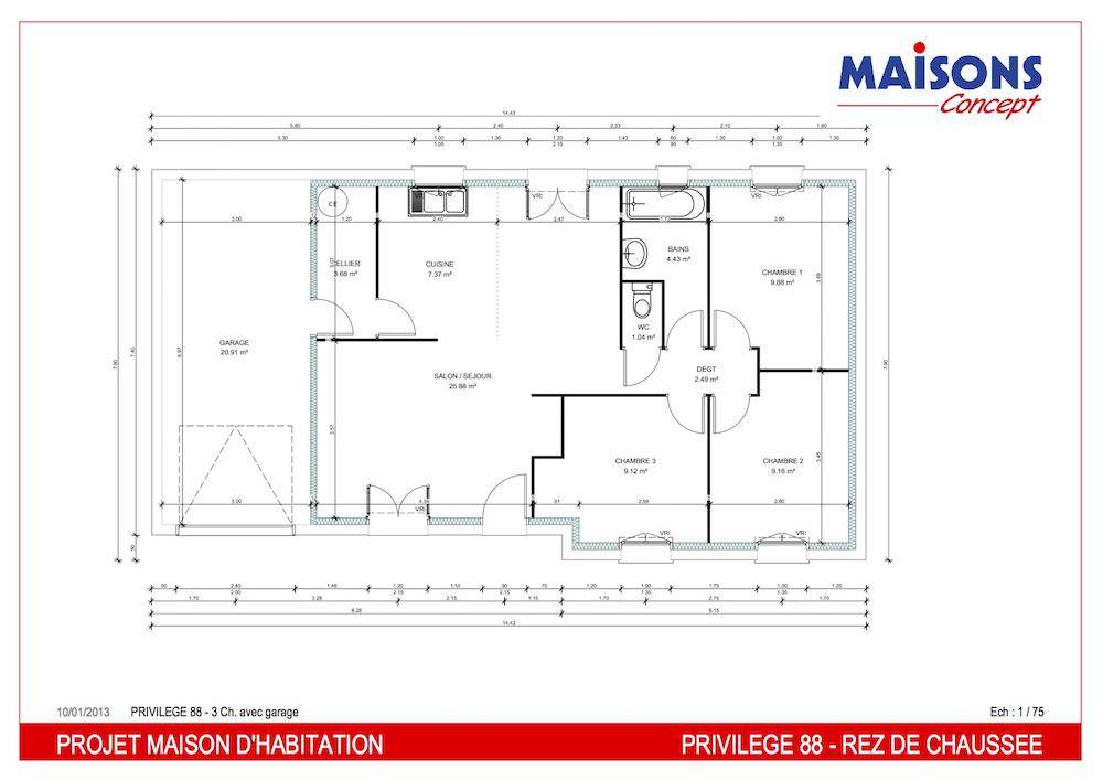 Construite dans le respect de la norme RT2020, la maison ""Privilège"" est synonyme de basse consommation énergétique. Elle est conforme à la réglementation environnementale RE2020, vous assurant ainsi des économies significatives sur vos factures d'énergie tout en contribuant à la protection de l'environnement. Ce modèle intègre également un garage, un atout non négligeable qui ajoute une valeur supplémentaire à votre propriété.