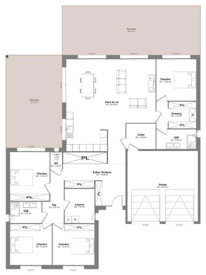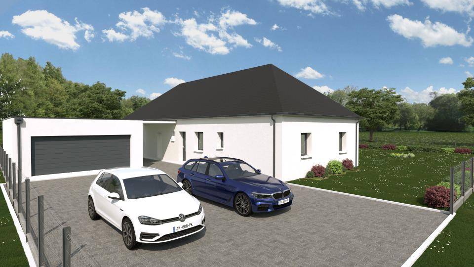 TERRAIN ET MAISONNous vous proposons cette maison neuve, baptisée « »Élégance » », un modèle qui se distingue par sa forme en L, offrant à la fois style et fonctionnalité. Avec une surface habitable de 93 m², cette maison de plain-pied est conçue pour maximiser l’espace et le confort de ses résidents. Elle comprend un grand salon-séjour lumineux, ouvert sur une cuisine moderne, idéale pour partager des moments conviviaux en famille ou entre amis. L’architecture en L permet une séparation naturelle entre l’espace de vie et l’espace nuit, ce dernier étant composé de 3 chambres spacieuses, garantissant intimité et tranquillité. La maison dispose également d’un garage intégré, pratique pour sécuriser votre véhicule ou pour du stockage supplémentaire, ainsi qu’un cellier adjacent à la cuisine, parfait pour organiser vos provisions et ustensiles de cuisine.L’une des caractéristiques les plus appréciées de ce modèle est son enduit bi-ton, qui ajoute une touche d’élégance et de modernité à l’extérieur de la maison, la faisant ressortir dans n’importe quel environnement. Construite dans le respect des normes de la RE2020, cette maison basse consommation est un choix judicieux pour ceux qui cherchent à réduire leur empreinte écologique tout en bénéficiant d’un confort optimal. Elle est personnalisable selon vos besoins et vos envies, vous permettant de créer un foyer qui vous ressemble, adapté à votre mode de vie. » »Élégance » » est plus qu’une maison, c’est un lieu de vie pensé pour votre bien-être et celui de votre famille, où chaque détail a été conçu pour répondre à vos attentes les plus élevées. Ne manquez pas l’opportunité de construire la maison de vos rêves, un espace où chaque jour sera empreint de confort, de style et d’efficacité énergétique.