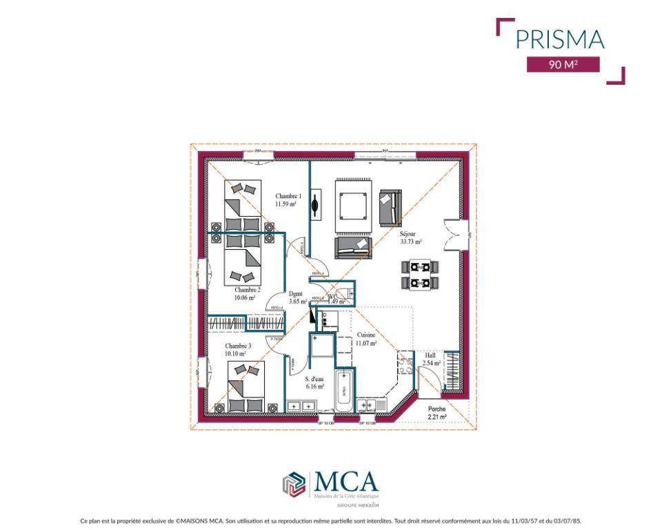 Quelque soit l'orientation de votre terrain, la Prisma vous permet de profiter d'une exposition Sud du salon/séjour. Vous serez également séduit par son porche couvert.