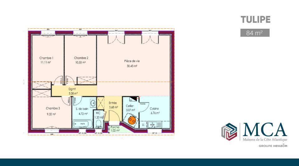 TERRAIN ET MAISONPauline Peyras Darracq des Maisons MCA à Hagetmau, vous propose d’adapter le modèle Plaisir Sud sur un terrain de 1499m2 plat, secteur calme sur la commune de Sainte colombe.Notre modèle Plaisir Sud d’une superficie de 146 m2 est la maison familiale par excellence ! Elle dispose d’une une cuisine semi ouverte avec cellier attenant, donnant sur une magnifique pièce de vie traversante, baignée de lumière grâce à ses nombreuses ouvertures, donnant sur une belle terrasse couverte, pour offrir un espace jour de plus de 60m2.Le coté nuit est composé de 3 grandes chambres avec placards, une suite parentale avec sa propre salle d’eau, un bureau de plus de 11m2, et une salle de bains avec wc. Un garage de près de 17m2, vient compléter ce bel ensemble.Le prix affiché comprend le terrain, les frais de notaire, les frais annexes (raccordements, bornage, etc….) et cette maison livrée prête à décorer, aux normes RE2020.Il restera à votre charge le revêtement de sol des chambres, la peinture intérieure ainsi que la cuisine équipée.Contactez vite Pauline Peyras-Darracq au (Numéro supprimé) à l’agence d’Hagetmau afin qu’elle vous guide dans les démarches et vous accompagne dans ce projet de construction personnalisé.