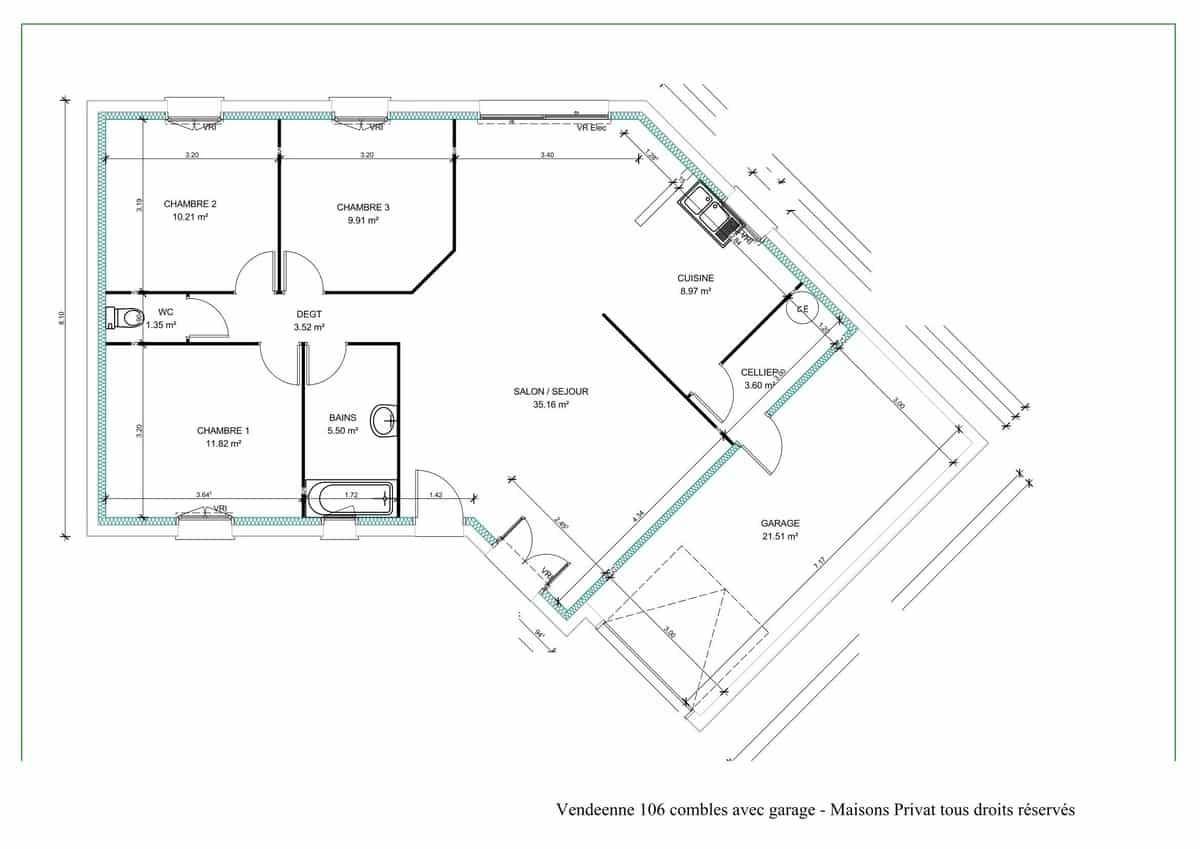 Sur ce terrain, nous vous proposons cette maison neuve, la Vendéenne, construite par Maisons Privat, un constructeur centenaire reconnu pour ses excellents avis clients dans la région.