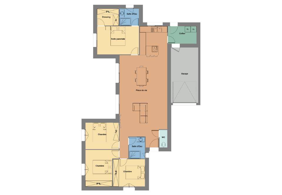 TERRAIN ET MAISONBeau terrain situé dans un environnement calme et verdoyant, proche des commodités et idéal pour concrétiser votre projet de construction. Agréable et spacieuse, cette maison de plain-pied vous propose une cuisine aménagée ouverte sur un vaste salon séjour donnant sur l'arrière. La cuisine est à proximité d'un cellier et d'un garage, ce qui facilite l'habitabilité de cette maison. L'espace nuit est composé de trois belles chambres avec rangement, d'une salle de bains équipée et des wc séparés. Ses jeux d'enduits personnalisables sauront vous séduire. Pour vous assurer un confort de vie et conformément à la RE2025, nous avons choisi un mode de chauffage par PAC + plancher chauffant, volets roulants électriques. Prix hors fourniture et pose : des appareils sanitaires (sauf système de chauffage et d'eau chaude sanitaire), du carrelage et de la faïence, des revêtements de sol dans les chambres. Hors décoration et aménagement intérieur et peinture. Hors raccordements, frais de notaire et dommage ouvrage. // Réf. : 1086-213534-VAS. Prix terrain : 113 000 €, hors frais d'agence à la charge de l'acquéreur. Ce terrain vous est proposé, par nos partenaires fonciers, dans le cadre d'un projet de construction avec nous. Les informations sur les risques auxquels ce bien est exposé sont disponibles sur le site Géorisques (www.georisques.gouv.fr). Prix maison : 134 030 €.