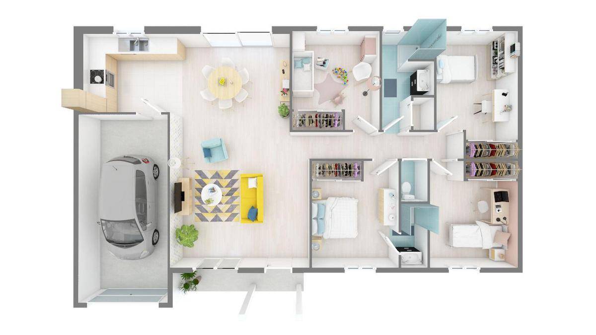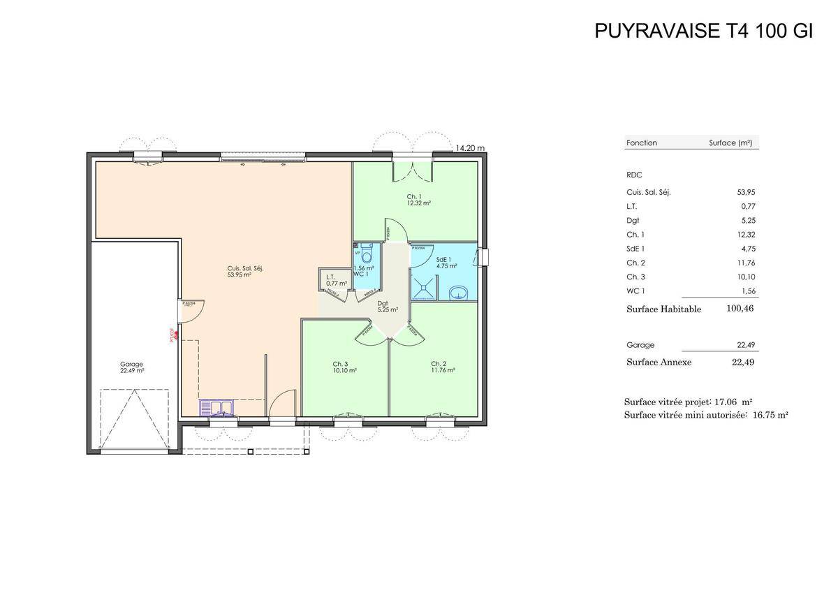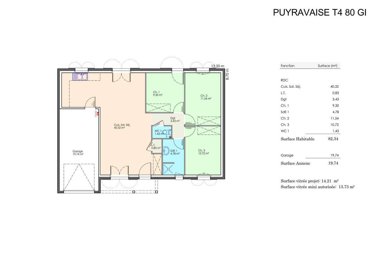 Sur ce terrain, nous vous proposons cette maison neuve : la Puyravaise, une maison de plain-pied familiale. Cette maison neuve traditionnelle de plain-pied est parfaite pour une petite famille, avec sa surface de 80 m².