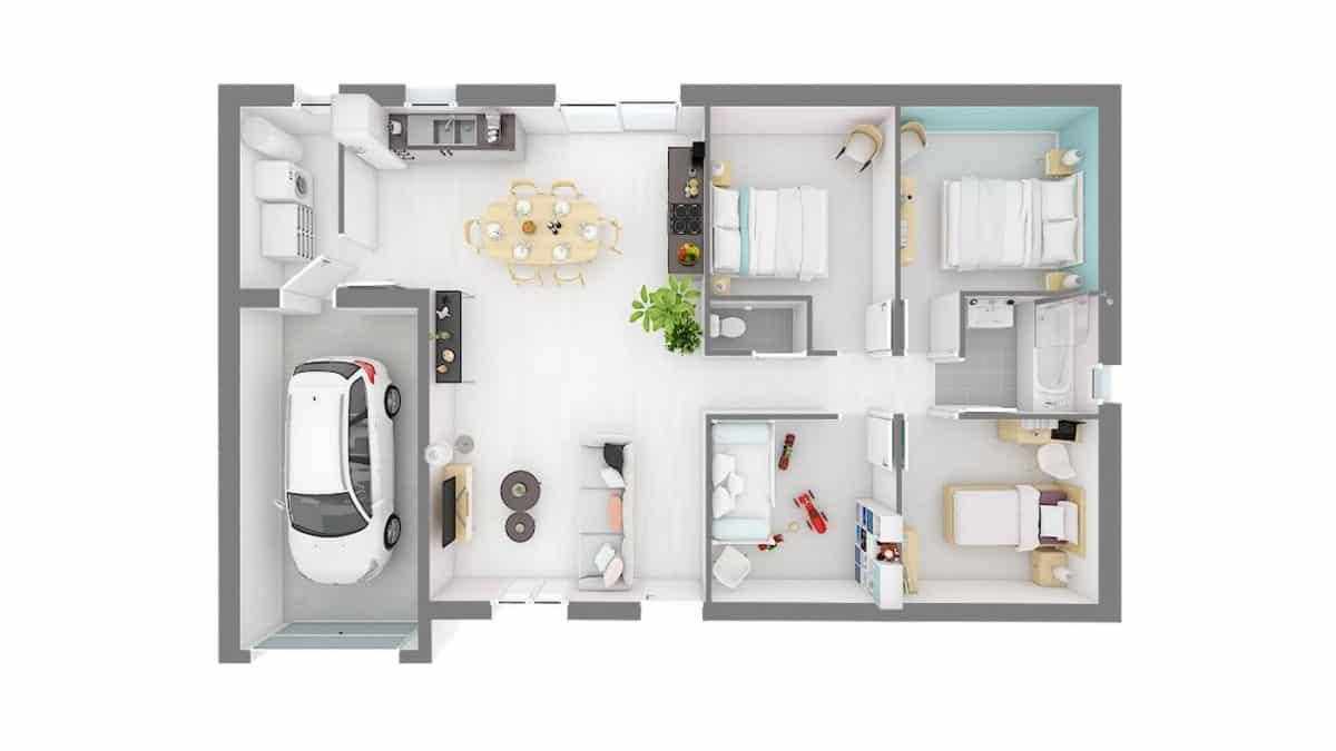 TERRAIN ET MAISONSur ce terrain, nous vous proposons cette maison neuve : l’INNOVA, une maison contemporaine absolument unique. Cette maison de plain-pied, d’une surface de 70 m², a tout de la demeure d’architecte. La composition de ses différents corps en fait une maison d’un aspect magnifique tout en permettant une disposition intérieure extrêmement intéressante.L’INNOVA, le rêve d’une maison unique réalisable, vous offre 4 pièces dont 3 chambres, une salle d’eau et un WC. Vous apprécierez particulièrement son porche accueillant et son garage accolé, idéal pour protéger votre véhicule des intempéries.Cette maison neuve est basse consommation et conforme à la RE2020, garantissant ainsi une performance énergétique optimale et des économies sur vos factures. Les options les plus demandées par nos clients, comme le plancher chauffant, peuvent être intégrées pour un confort supplémentaire.Construite par Maisons Privat, constructeur centenaire avec les meilleurs avis clients de la région, l’INNOVA est une opportunité à ne pas manquer pour ceux qui recherchent une maison moderne, économique et respectueuse de l’environnement. N’attendez plus pour réaliser votre rêve d’une maison unique et contemporaine avec l’INNOVA.