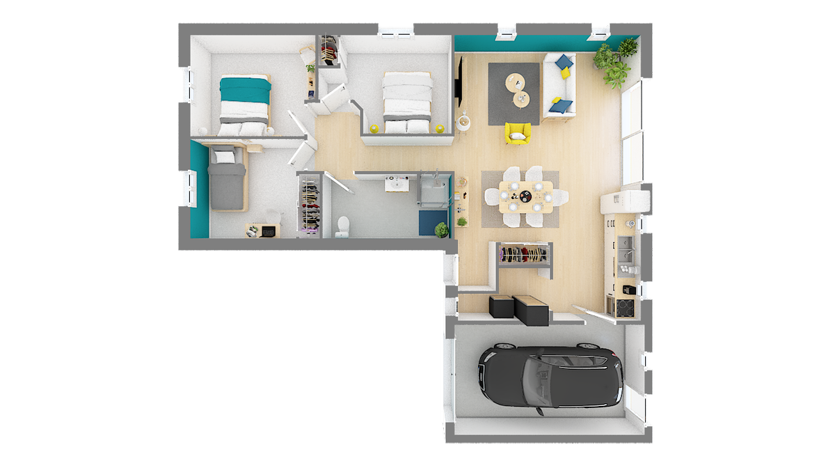 Sur ce terrain, nous vous proposons cette maison neuve : la Lucéenne, un modèle de plain-pied en forme de L, conçu pour offrir un confort optimal dans un espace de 90 m². Idéale pour les couples et les jeunes familles, cette maison basse consommation est conforme à la RE2020, garantissant des économies d'énergie et un respect de l'environnement.