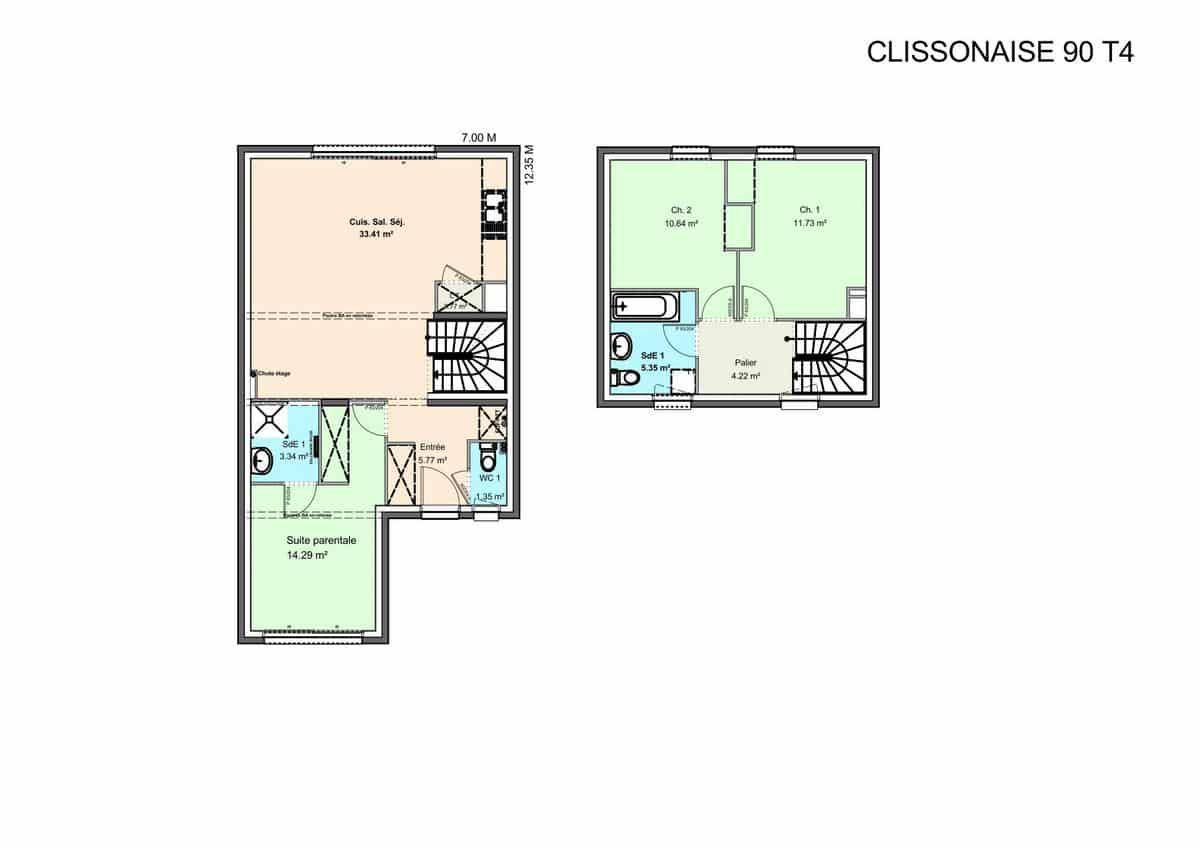 Très jolie maison traditionnelle à étage, la Clissonnaise conviendra aussi bien aux primo-accédants qu'aux couples ou aux petites familles. Elle se compose de 3 pièces, dont 2 chambres spacieuses, et est idéale pour un terrain étroit grâce à son design ingénieux.