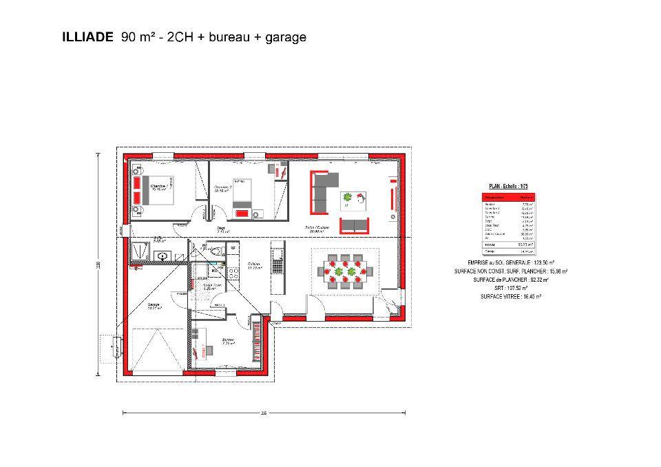 TERRAIN ET MAISONCette maison plain pied moderne de 85m² est équipé de trois chambres de 10 à 12m² avec placards, d’une salle de bain de 7m², d’un WC aéré ainsi que d’un espace de vie de 38m² Ces éléments font de cette maison la maison idéale pour l’organisation optimisée de la vie de votre famille. Le séjour est traversant et doté d’une grande baie vitrée qui donne sur l’extérieur. Système de chauffage Monosplit. Répond à la RE2020. Pour un renseignement, veuillez nous contacter au (Numéro supprimé).