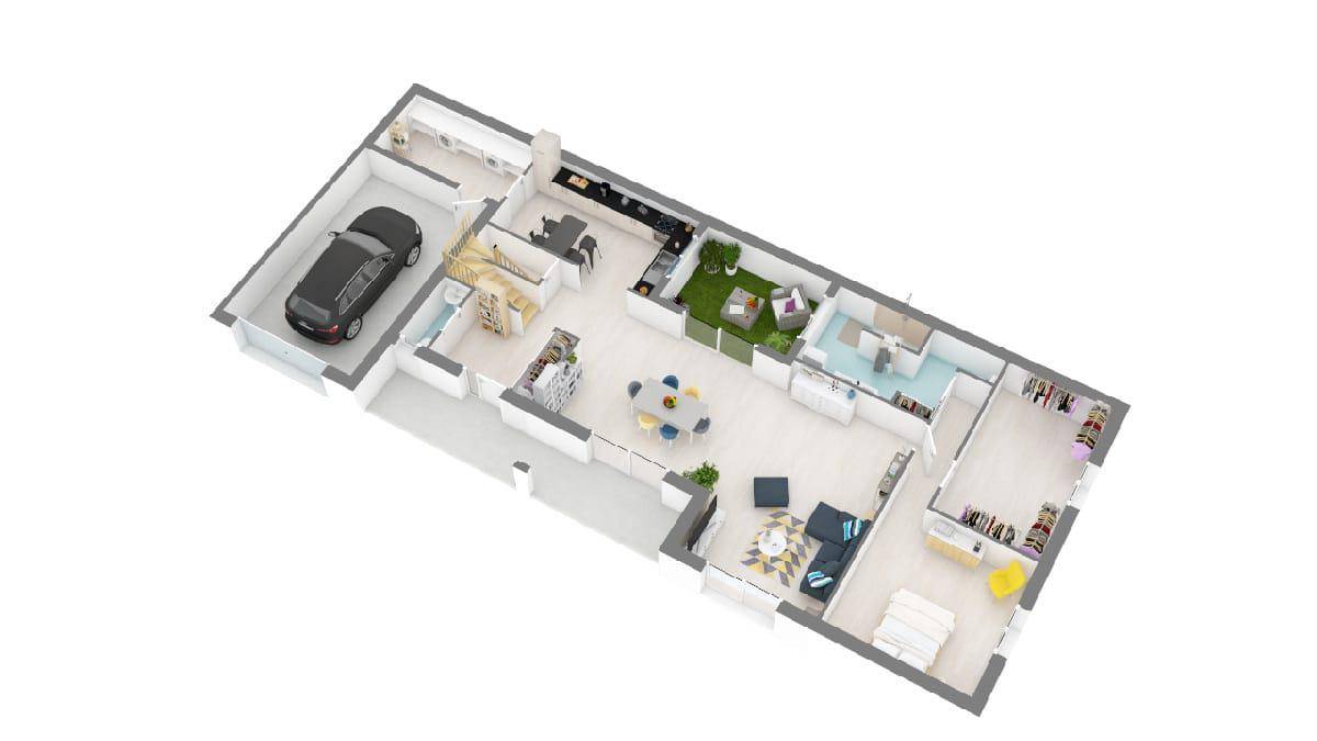 Nous vous proposons cette maison neuve, baptisée Tentation Archi, un modèle qui incarne la maison contemporaine par excellence. Avec ses 126 m² de surface habitable, cette demeure est conçue pour allier esthétique et fonctionnalité, répondant ainsi aux attentes des plus exigeants.