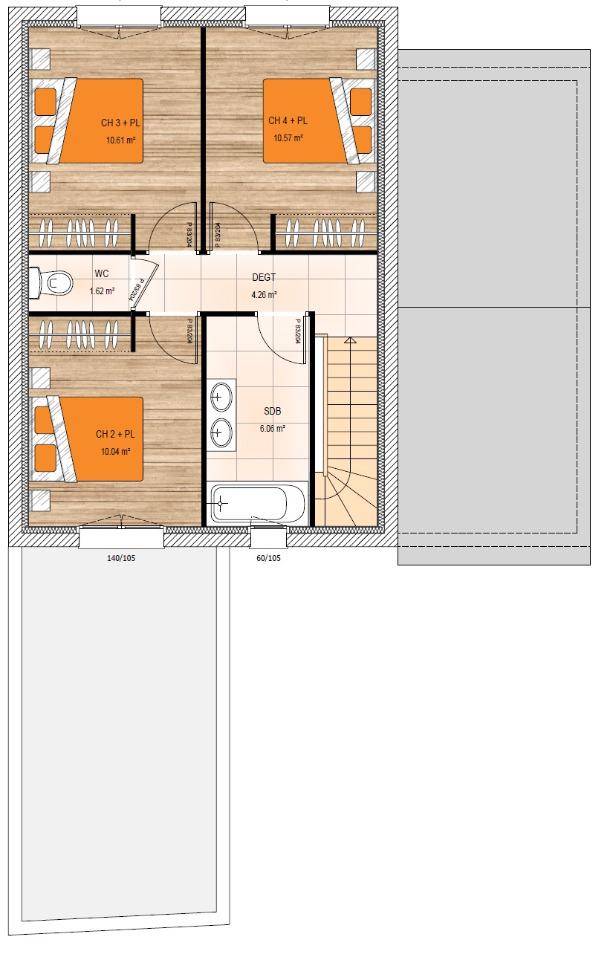 En centre-ville - À Écouflant (49000), maison neuve en vente de 5 pièces, 2 niveaux, 100 m² de surface et 449 m² de terrain. Son intérieur comporte quatre chambres, une cuisine et deux salles de bains.