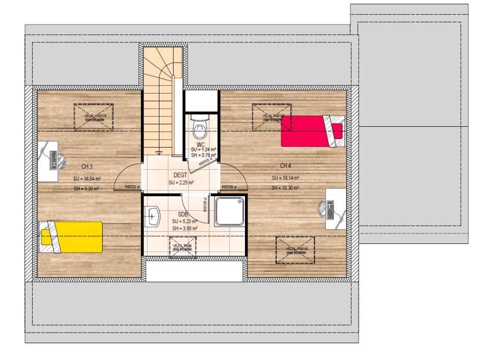 Proche d'Angers - Maison neuve 4 pièces en vente à Jarzé (49140) avec une surface de 95 m² sur un terrain de 564 m². Conçue de plain-pied, elle inclut quatre chambres, une cuisine et deux salles de bains.