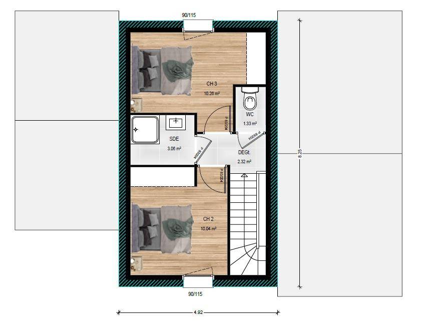 Proche d'Angers - À vendre à Saint-Barthélemy-d'Anjou (49124) : maison neuve 5 pièces de 84 m² sur un terrain de 675 m². Elle dispose de trois chambres, d'une cuisine et de deux salles de bains.