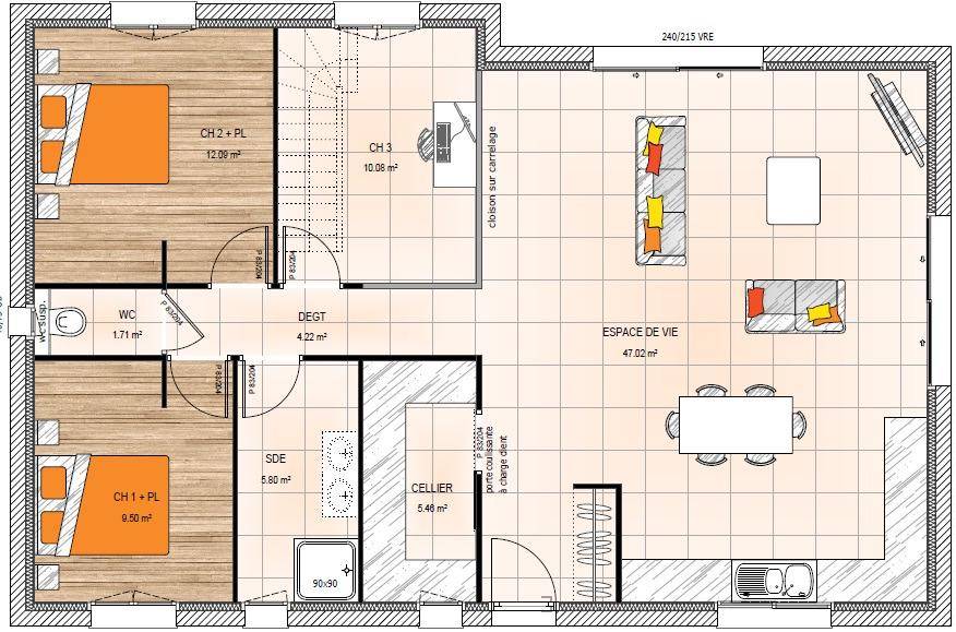TERRAIN ET MAISONNous vous proposons cette maison neuve, baptisée « »Élégance » », un modèle qui se distingue par sa forme architecturale en L, offrant à la fois style et fonctionnalité. Avec une surface habitable de 78 m², cette maison de plain-pied est conçue pour optimiser l’espace et la lumière naturelle, créant ainsi un cadre de vie à la fois confortable et esthétique.L’Élégance se compose de 3 pièces principales, dont 2 chambres spacieuses, promettant un espace de vie idéal pour une petite famille ou un couple. Le grand salon-séjour, cœur de la maison, s’ouvre sur une cuisine moderne et entièrement équipée, formant un espace ouvert parfait pour les moments de partage et de convivialité. Un garage intégré, accessible depuis l’intérieur de la maison, ainsi qu’un cellier pratique, ajoutent à la fonctionnalité de ce modèle.Cette maison est personnalisable selon vos désirs et besoins, vous permettant de créer un intérieur qui vous ressemble. Que vous rêviez d’une salle de bain supplémentaire, d’un bureau ou d’une chambre d’amis, l’Élégance s’adapte à votre mode de vie.L’une des caractéristiques les plus appréciées de ce modèle est son enduit bi-ton, qui lui confère une allure moderne et élégante, soulignant ainsi son architecture unique. Mais ce qui distingue véritablement l’Élégance, c’est son engagement envers l’environnement. Cette maison est conçue pour être basse consommation et répond aux exigences de la norme RE2020, garantissant ainsi une efficacité énergétique optimale et une réduction significative de votre empreinte carbone.En choisissant l’Élégance, vous optez pour une maison qui allie esthétique, confort et respect de l’environnement. Une opportunité à ne pas manquer pour ceux qui cherchent à investir dans un bien immobilier durable et de qualité.