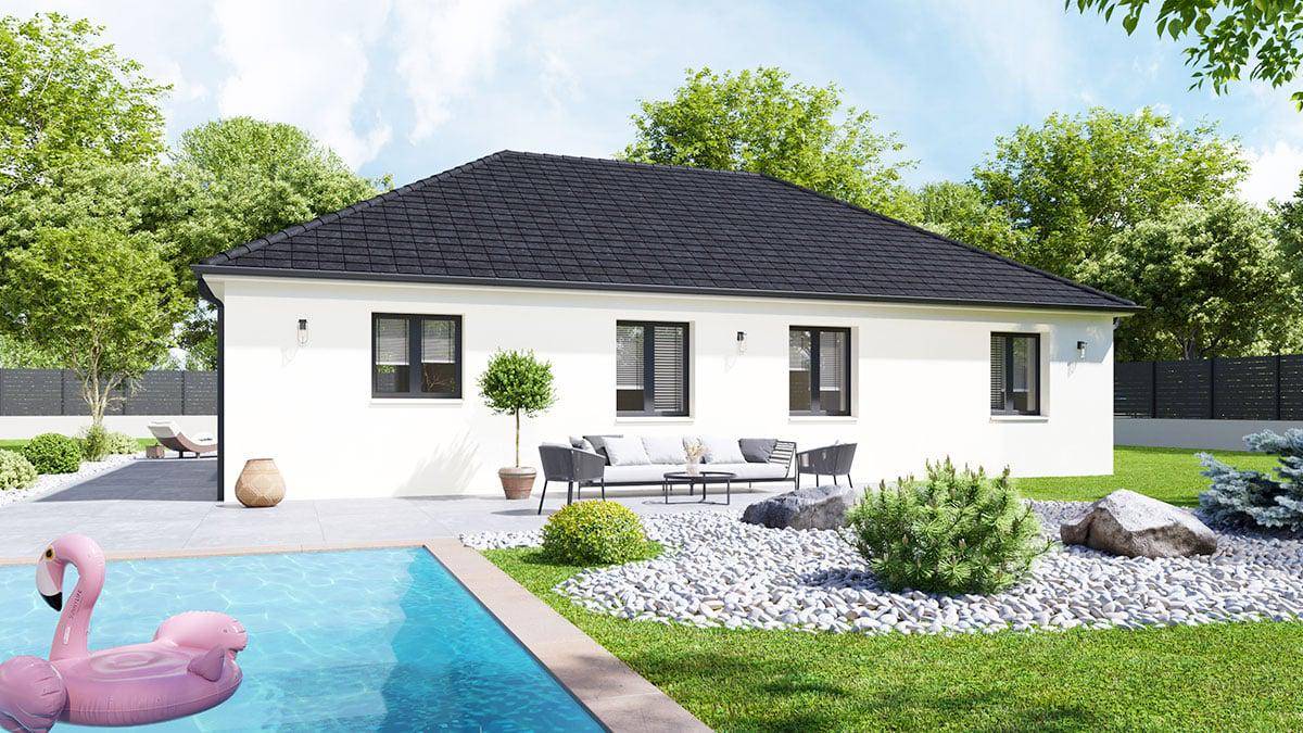 Cette maison de plain-pied est conçue pour être basse consommation et conforme à la RE2020, garantissant ainsi des économies d'énergie et un confort optimal tout au long de l'année.