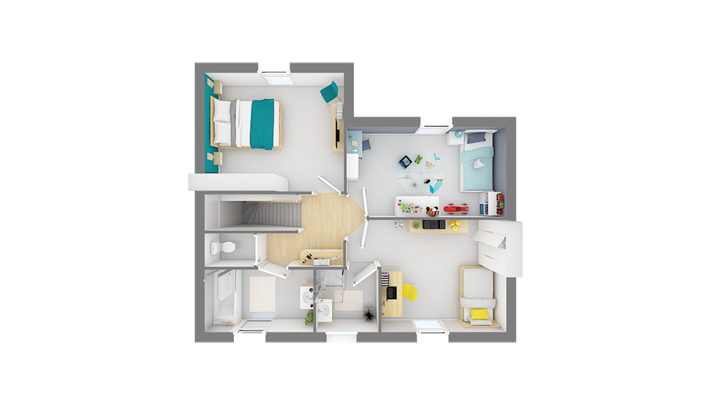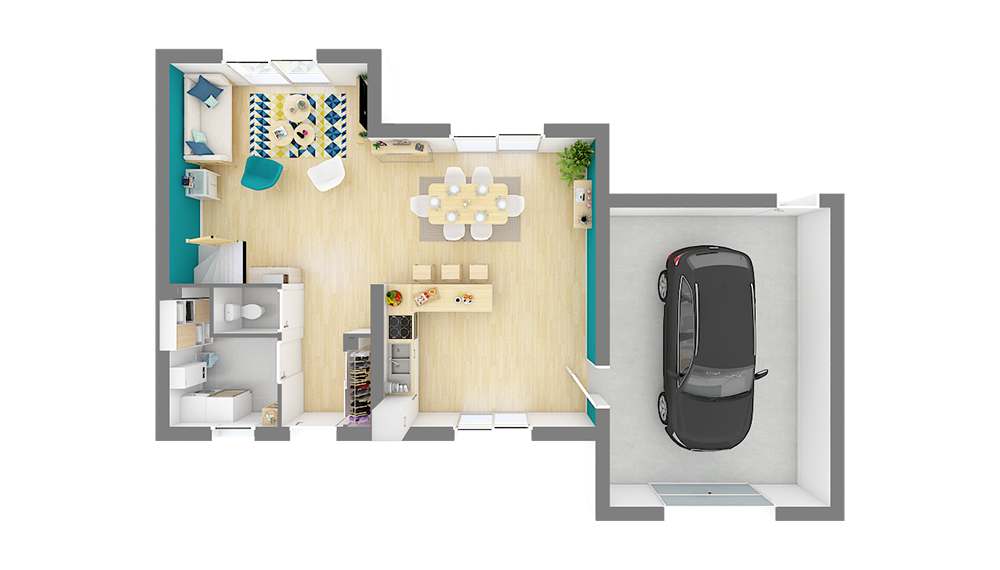 Faire le choix de la Saturne de 117 m², c’est faire un choix audacieux pour sa future maison. Résolument contemporaine avec son toit plat et ses nuances de textures alliant béton et bois, cette maison de 4 chambres offre en plus d’un style unique un confort inégalable !